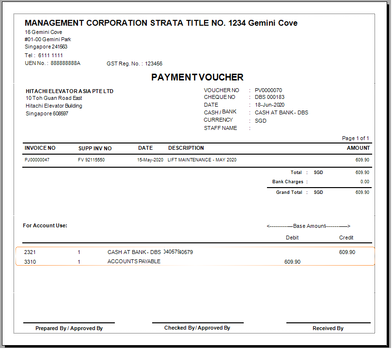 Make ad-hoc payment to the one-off supplier with a Print payment voucher (PV)