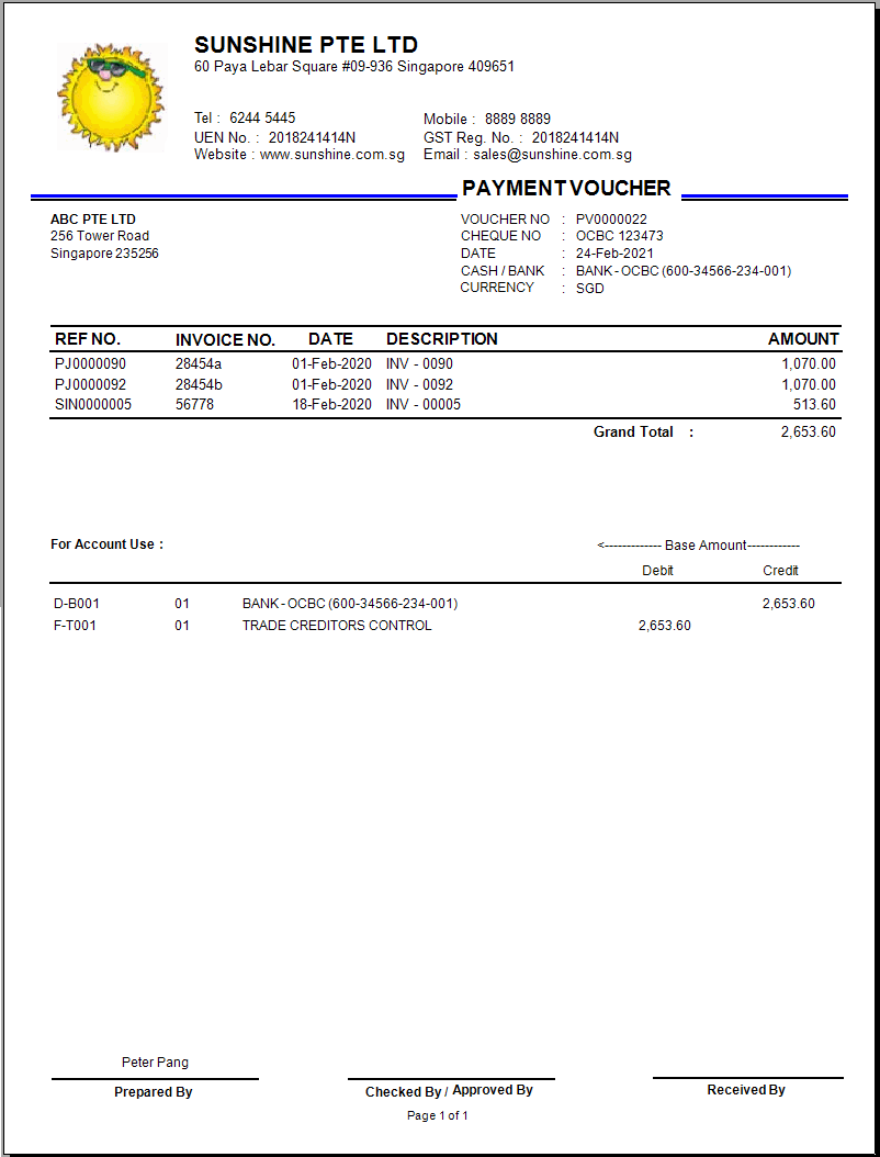 Explore sample document formats and reports available in REALTIMME Cloud Accounting Software. See examples of invoices, statements, payment vouchers, and financial reports.